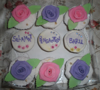 Alhamdulillah, repeat order by Iemah from Desa Coalfied... But this time Iemah would like to have 9pcs of Vanila Cupcakes topp with fondant deco... Special order for her cousins wedds... Iemah requested for simple design.. so this is what i can do... Hope u like it... :)
